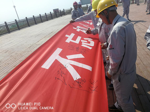 上午10時分公司全體人員在礦區(qū)260觀景平臺集合,開展“不忘初心、牢記使命”主題活動啟動及簽字儀式,活動由分公司經(jīng)理劉占中主持。