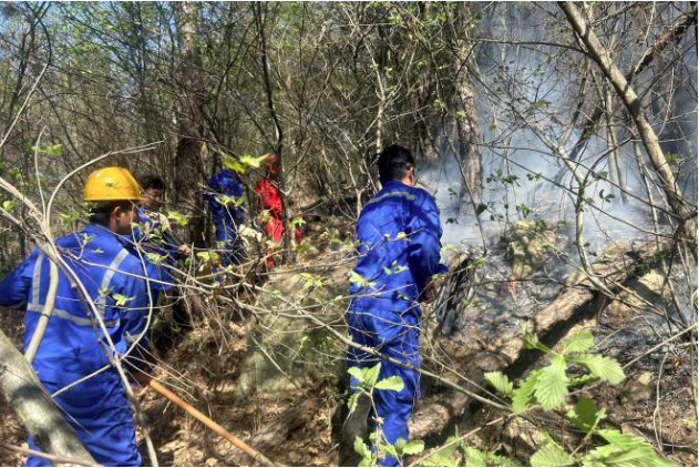 清明將至,當(dāng)?shù)卮迕穹傧銦埣漓耄斐娠w火引起了火災(zāi)。因起火點(diǎn)位于山地深處,遠(yuǎn)離公路,滅火任務(wù)困難,距離水源較遠(yuǎn),在項目副經(jīng)理向孝陽同志和安全副經(jīng)理張目利同志的帶領(lǐng)下,大家紛紛拿起鐵鍬、釘耙等工具,前往起火點(diǎn),清理易燃物,鏟土澆蓋火星子,為下一步工作做好鋪墊,終于在大家的努力下,水源送到了山頂,火情被一一撲滅。